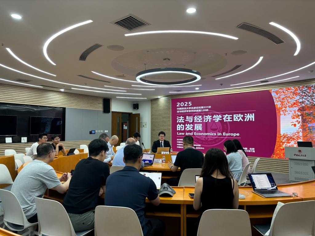 7月14日晚,由中国政法大学科研处、中国政法大学法与经济学研究院、中国政法大学金融监管法治研究中心联合主办的“中国政法大学名家论坛第331讲 法与经济学系列讲座第120讲:法与经济学在欧洲的发展”于我校海淀校区顺利召开。本次讲座由中国政法大学法与经济学研究院教授、副院长徐文鸣主持,意大利法与经济学学会主席、都灵大学教授Giovanni B. Ramello和德国法与经济学学会主席、柏林自由大学法学院教授Andreas Engert担任主讲人,北京大学法学院教授许德峰、中国人民大学法学院副教授吴至诚、香港大学法律学院环球学术研究员黄志成、中国政法大学民商经济法学院副教授吕梦醒、中国政法大学法与经济学研究院副教授谢尧雯担任评议人,部分同学参与了此次讲座。