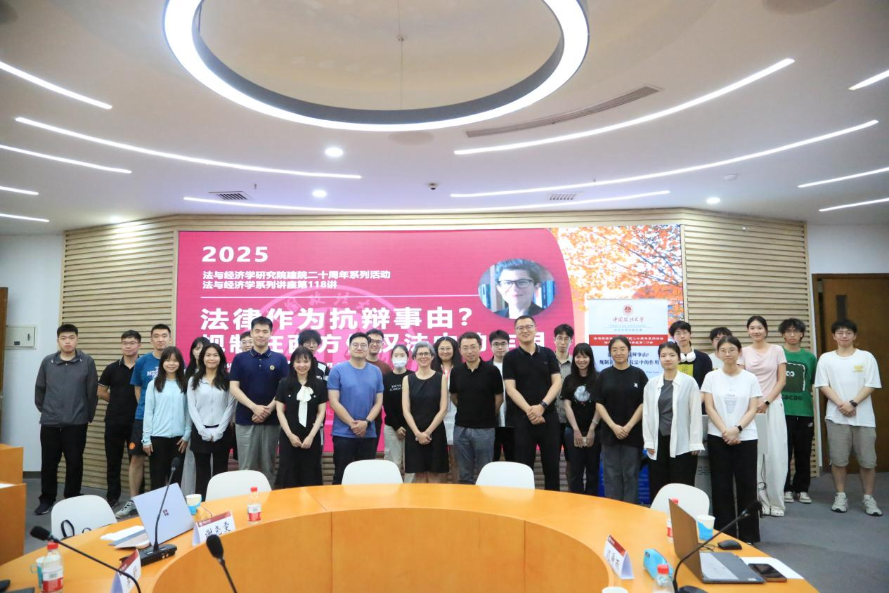 2025年7月2日,意大利的里雅斯特大学比较私法教授、欧洲私法共同体侵权法小组主席Marta Infantino应邀访问中国政法大学法与经济学研究院,并在学院路校区举行了以“法律作为抗辩事由?规制在西方侵权法中的作用”(Law as a Defense? The Role of Regulation in Western Tort Law)为题的学术讲座。此次讲座由中国政法大学法与经济学研究院副院长徐文鸣教授主持,北京大学法学院副院长戴昕副教授、荷兰鹿特丹伊拉斯姆斯大学法学院李舒助理教授、法与经济学研究院谢尧雯副教授和迟舜雨助理教授参与与谈。部分同学共同参与了此次活动。